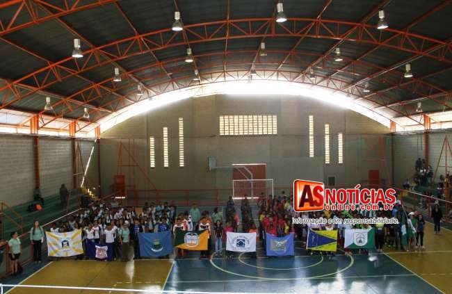 A cerimônia de abertura, na manhã de hoje(08), começou com o aluno Matheus da Silva Carlos, da Escola Estadual Rodrigo de Castro Moreira Pena, dando a volta olímpica, com a tocha, na quadra, acendendo a pira. Em seguida, o estudante, Jeferson Jesus Messias, da Escola Municipal Adélia Hosken Aires, fez o juramento e, por fim, os alunos das escolas fizeram uma apresentação de dança.