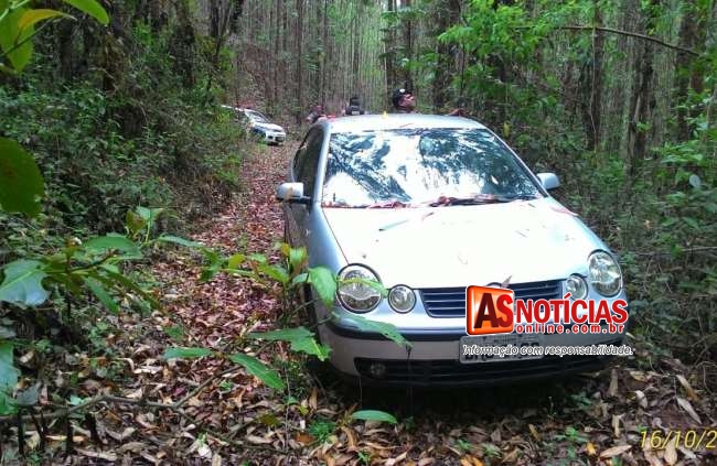 Após realizar buscas os Militares conseguiram localizar e recuperar o veiculo que foi abandonado, o veiculo estava com as rodas, apenas sem o aparelho de som, ele foi removido ao pátio credenciado onde será periciado e restituído ao dono.