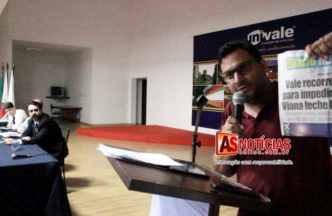André Viana exibiu uma manchete do jornal Diário de Itabira onde a empresa Vale conseguiu uma liminar proibindo-o de fazer qualquer manifestação na ferrovia sob pena de 50 mil reais em multa/dia. Também cobrou uma resposta da Agência ao ofício entregue na audiência em Brasília “que sequer foi respondido” e finalizou: “Que sejamos ouvidos, pois quando não tinha dinheiro, não tinha bilhões de reais envolvidos, nossos pais e avós estavam alimentando a ferrovia para que hoje Rio de Janeiro, Mato Grosso e outras cidades vêm querer dinheiro...”.