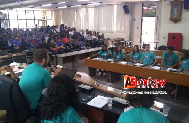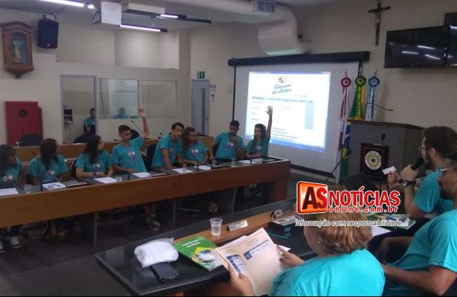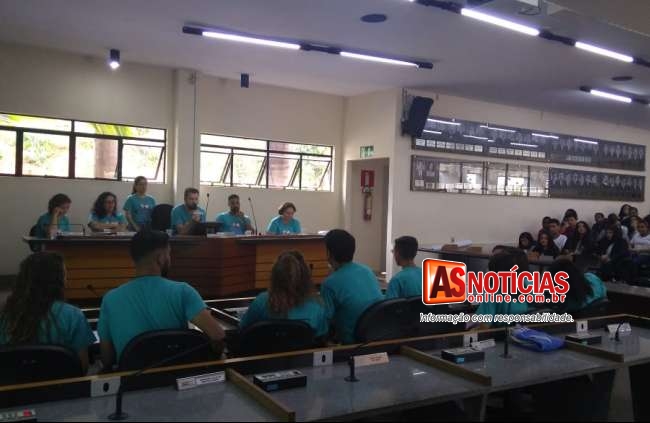 Atividade realizada pela Escola do Legislativo reúne estudantes de oito escolas estaduais na Câmara Municipal.