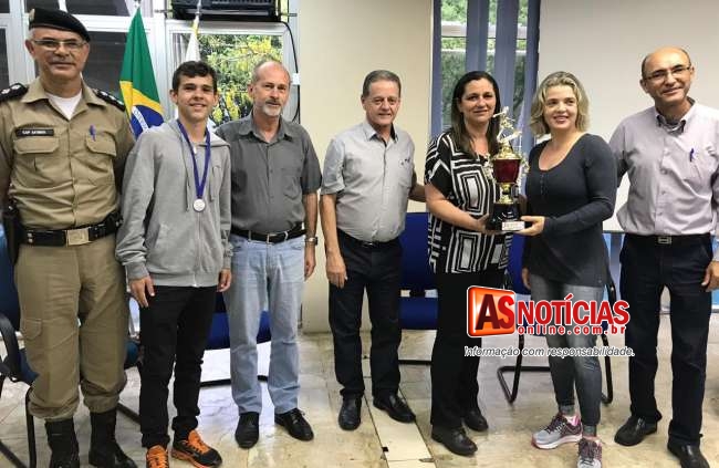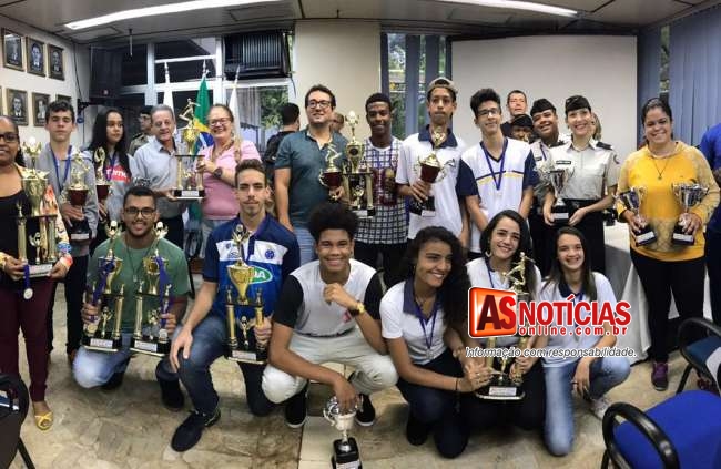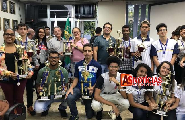 A cerimônia realizada no auditório do Paço Municipal reuniu representantes das escolas que conquistaram o pódio da competição nas modalidades de handebol, vôlei, futsal e basquete.