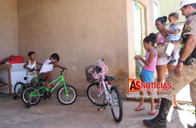 Os policiais conseguiram a doação de três bicicletas, uma que foi doação da empresa Ademir Transportes e outras duas doadas pelo “Ladinho” com a ajuda de seus filhos “Keninho” integrante do Moto Clube Skuls e Tallyson.