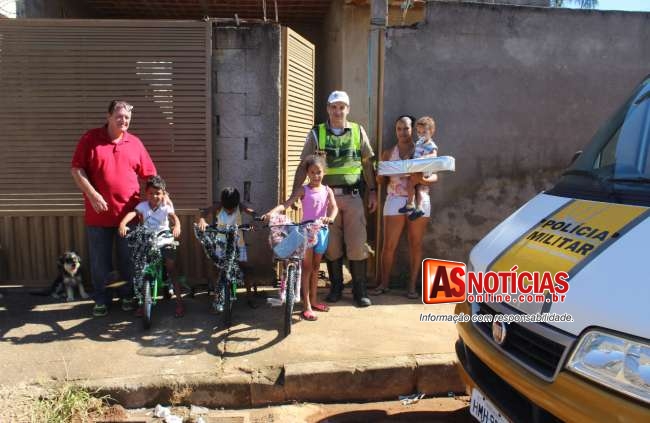Militares da Polícia Rodoviária Estadual intermediaram e ajudaram a realizar o sonho de três crianças de uma família carente que pediram para ganhar bicicletas neste natal. Os policiais conheceram as crianças através da mãe que passava por necessidade e usou a rede social para pedir ajuda do básico para a alimentação dos filhos.